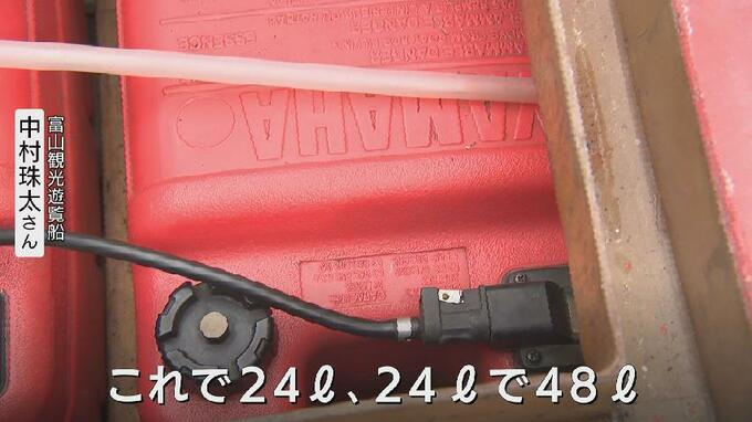 運航は1回30分で、1隻あたりおよそ2リットルのガソリンを使用。多い日は2隻で1日76リットルのガソリンを使うと言います。