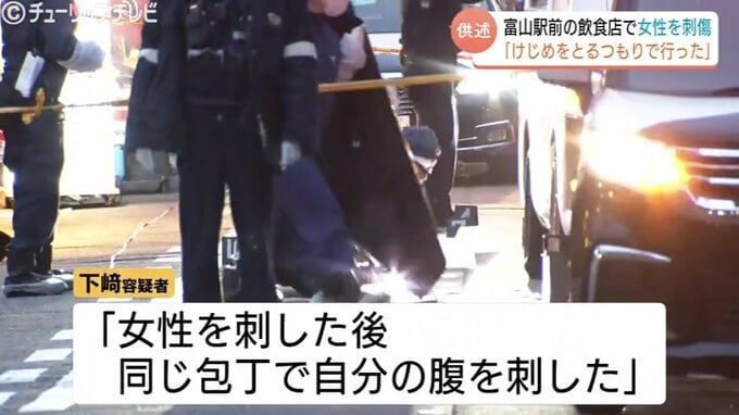 下崎容疑者は、自身の腹にも刺し傷を負っていて捜査関係者によりますと「女性を刺した後、同じ包丁で自分の腹を刺した」と供述しています。