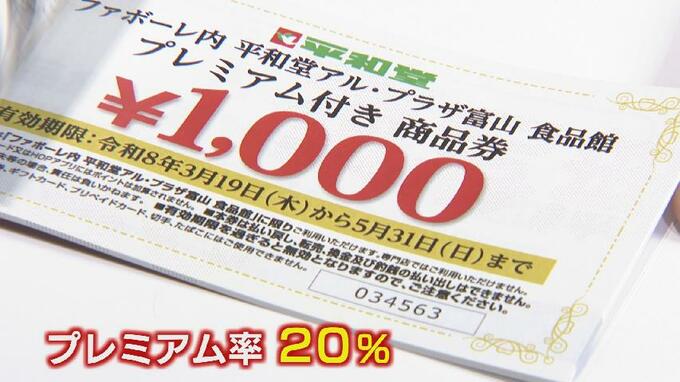 プレミアム付き商品券は富山市の食料品物価高騰対策で、アルビスや大阪屋ショップなど市内のスーパーで5月末まで利用できます。
