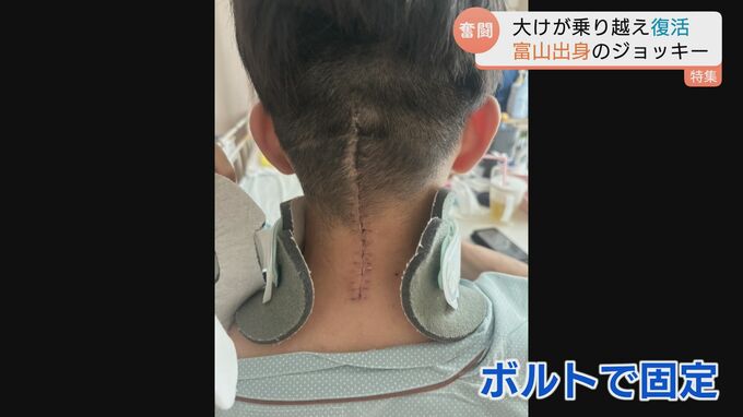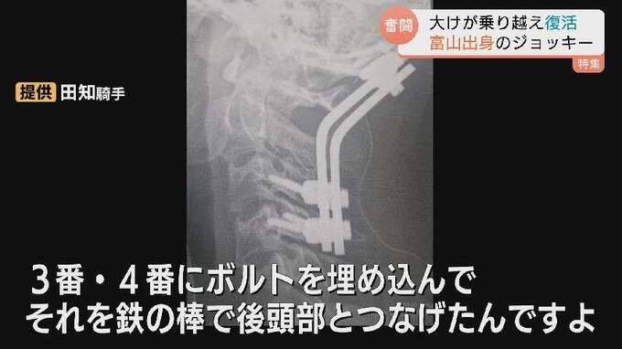 落馬で救急搬送された田知騎手。緊急手術で首の骨をボルトで固定しました。
