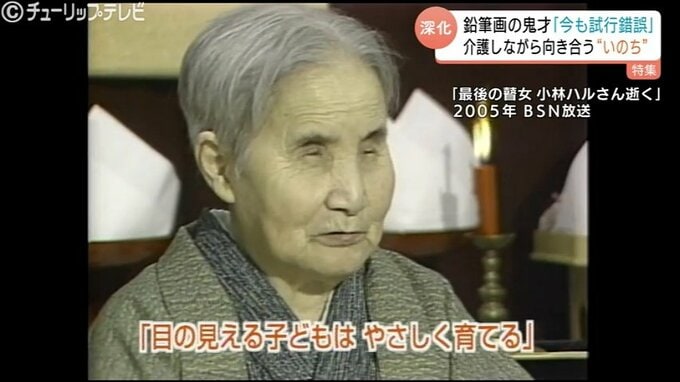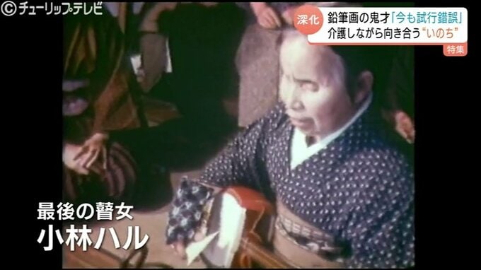 鉛筆画による独自の表現を目指していた頃出会ったのが「最後の瞽女(ごぜ)」と呼ばれた盲目の旅芸人、小林ハルさんです。
