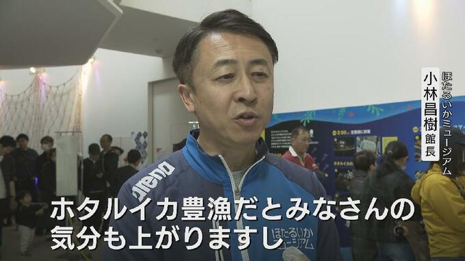 ほたるいかミュージアム 小林昌樹館長「ホタルイカ豊漁だとみなさんの気分も上がりますし、ホタルイカせっかくだから行こうじゃないかということでみなさんテンション上げて見る、食べるということでたくさんいらっしゃるので、豊漁は非常にいい好材料となっています」