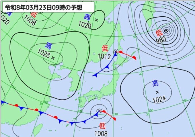 この前線上に低気圧が発生し、22日夜には種子島・屋久島付近を通過、23日夜には日本の東へ進む見込みです。