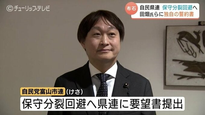 さらに、自民党富山市連も23日朝、保守分裂の回避に向け、中田氏の支援体制強化を求める要望書を提出しました。