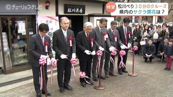 桜の開花を前に23日、松川茶屋で行われたのは松川遊覧船の発船式。