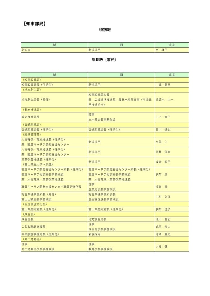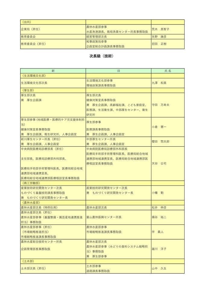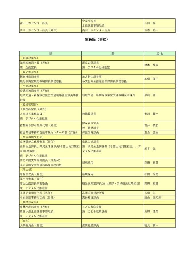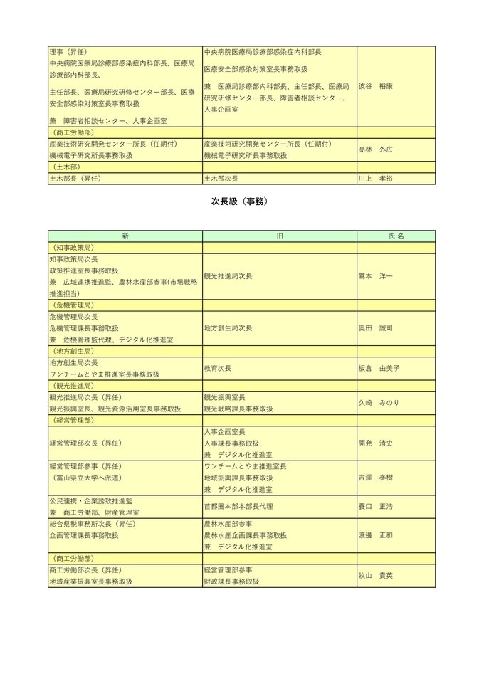 ニュースクリップ 【富山県職員】人事異動 2026年(令和8年)4月 【異動一覧リスト】女性管理職106人、管理職の22.7%占める 2026年3月24日(火) 17:35 国内 暮らし・マネー 知事部局(特別職、部長級)富山県職員2026