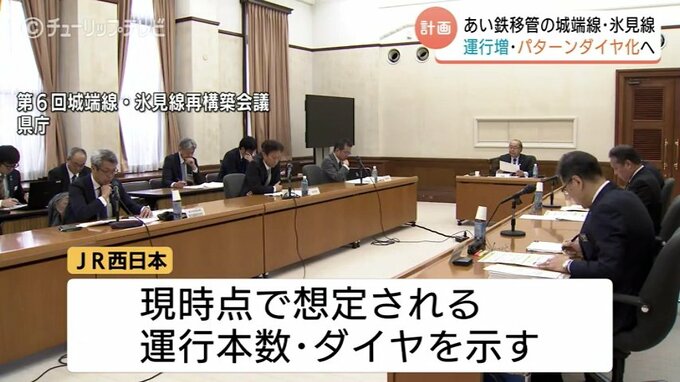 JR城端線・氷見線の再構築に向けた会議が開かれ、JR西日本が現時点で想定される運行本数やダイヤを示しました。