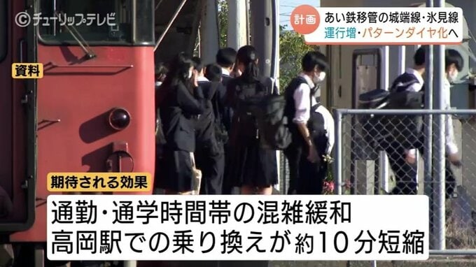 これにより、通勤・通学の時間帯の混雑が緩和できるほか、高岡駅での乗り換え時間が10分程度短縮できるといいます。