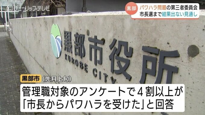 総務管理部によりますと、第三者委員会の設置は黒部市で前例がなく、詳細は今後詰めるとしていて、来月12日の市長選までに結果が判明しない可能性が高くなっています。