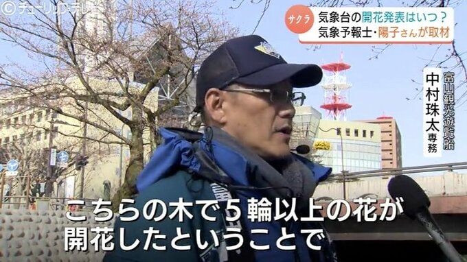 「こちらの木で5輪以上の花が開花したということで、松川は開花と」