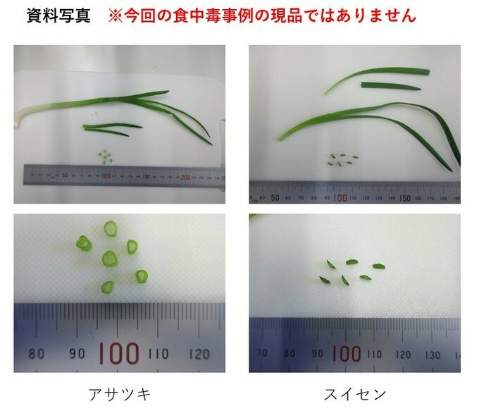 厚生センターが患者宅の畑を調査したところ、アサツキに混じってスイセンが自生していることが確認され、採取した植物を検査した結果、スイセンに含まれる有毒成分リコリン及びガランタミンが検出され、原因食品はスイセンと断定されました。