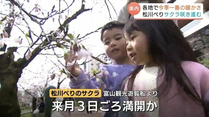 松川べりで遊覧船を運営する富山観光遊覧船によりますと、松川べりのサクラは4月3日ごろには満開となる見込みです。