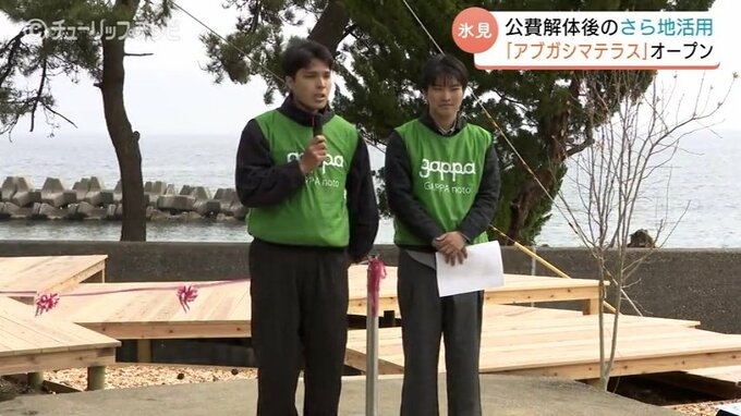 ニュースクリップ 「立ち寄っていける憩いの場所へ…」能登半島地震の被災地・氷見市に「アブガシマテラス」完成!富山大生と住民が歩む復興の第一歩 公費解体後の更地を絶景スポット活用へ 富山・氷見市 2026年3月30日(月) 20:00 国内 能登半島地震で多くの建物が倒壊した富山県氷見市で、公費解体後の更地を活用した「アブガシマテラス」が完成し29日、オープニングセレモニーが行われました。富山県氷見市姿(すがた)地区にオープンしたのは県最…