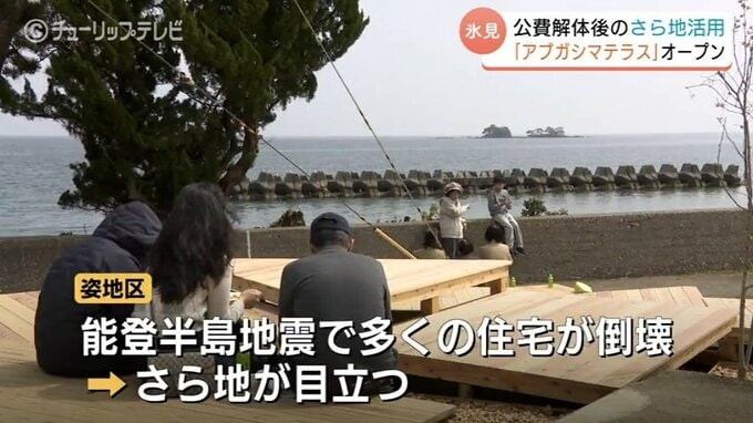 姿地区は能登半島地震で多くの住宅が倒壊し、更地が目立っていたことから去年8月、富山大学の学生らが住民の要望を取り入れたテラスの設置を氷見市に提案しました。
