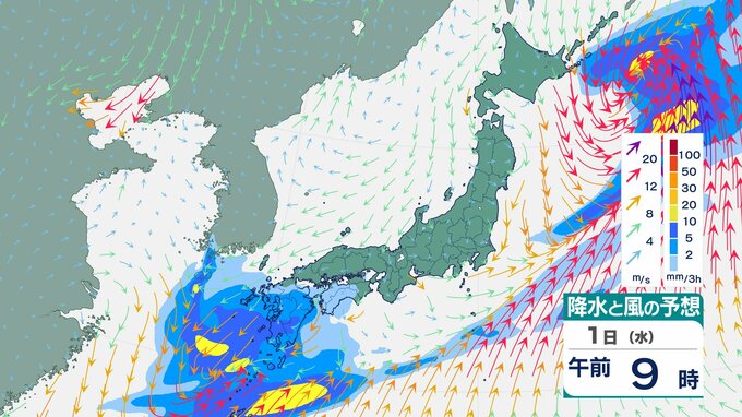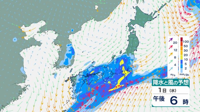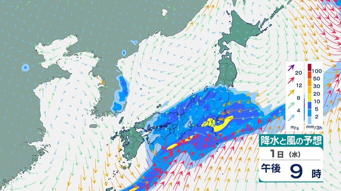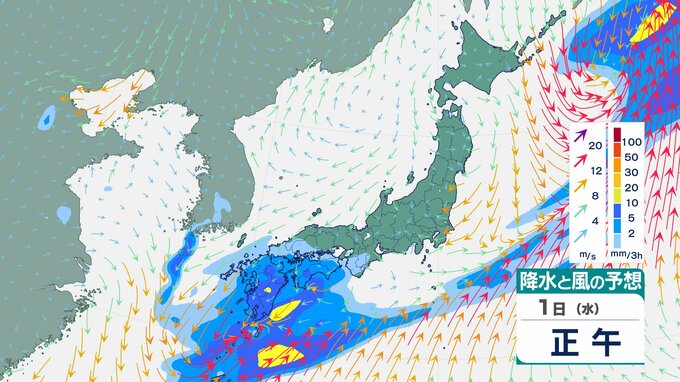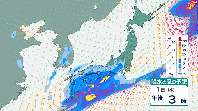 ニュースクリップ 四国地方 降り始めから150mm近い雨量も このあとも最大70mm降雨予想 31日昼前にかけ河川の増水・氾濫に警戒【雨風シミュレーション】 2026年3月31日(火) 10:19 国内 天気 1日(水)の雨と風のシミュレーション
