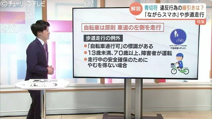 続いては違反の線引きが難しい「歩道走行」。自転車は車道の左側を走るのが原則ですが、例外として歩道走行が認められているケースがあります。