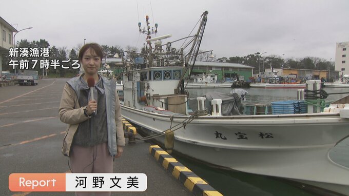 河野文美アナウンサー「今日解禁となったシロエビ漁。ですが風の影響を受けて初日から船が出ませんでした」