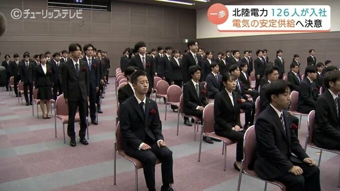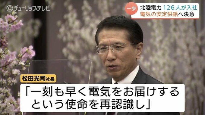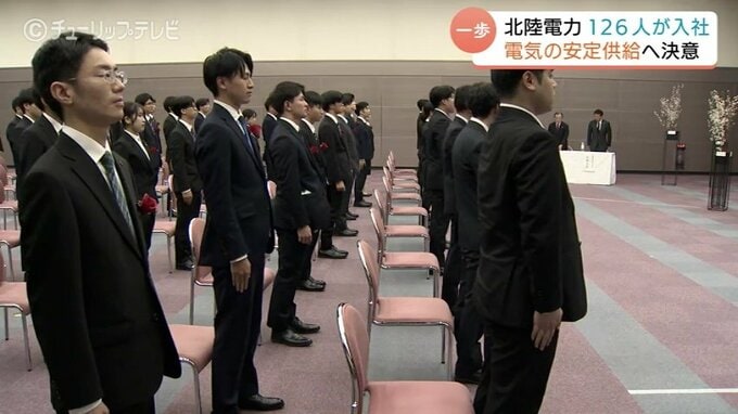 1人ひとりの名前を読み上げ、辞令が交付されたあと、松田光司社長が約2年前の能登半島地震でのべ7万戸が停電したことなどを例に「一刻も早く電気をお届けするという使命を再認識し、北陸地域の復興への貢献、そして電力の安定供給にむけみなさんも「こころひとつに」全力で取り組んでいってほしい」と述べました。