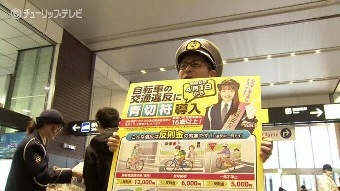 1日朝、富山駅周辺などでは警察官がビラを配りながら青切符適用の周知を図ったほか取り締まりも行われました。