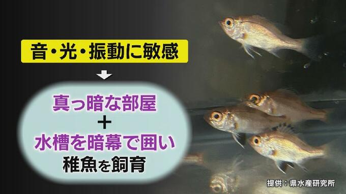 取材した福西さんによると、アカムツは繊細で、音や光、振動に敏感。トラックが近くを通っただけで、驚いて暴れて水槽から飛び出したりすることも。真っ暗な部屋で、水槽に暗幕をかけて、大切に稚魚を飼育しているそうです。