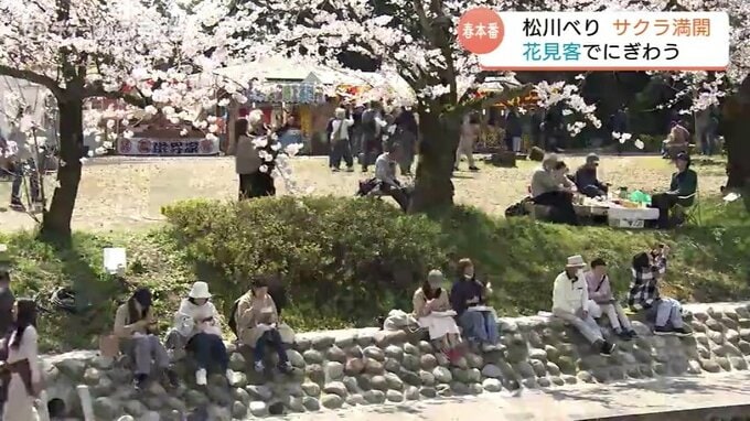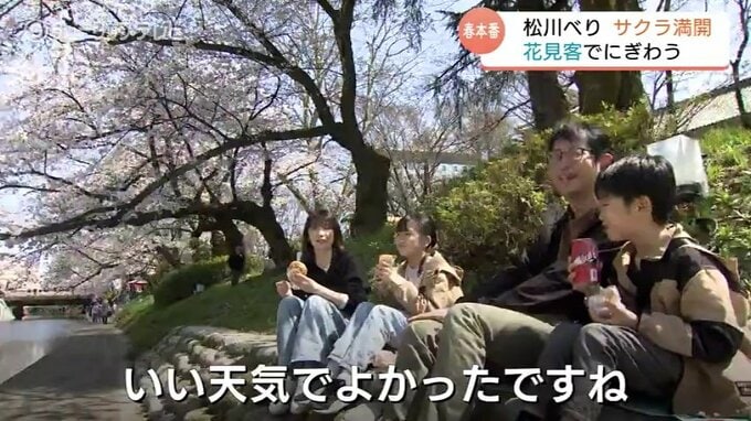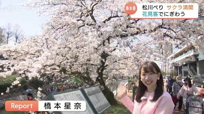 橋本星奈「松川べりの桜はもうすっかり満開。日差しもたっぷりで花見日和となっています」