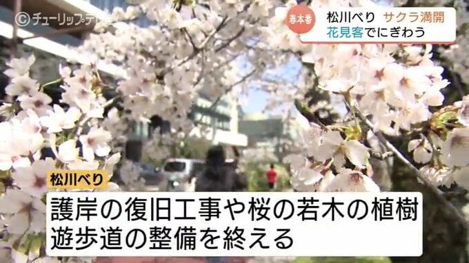 およそ530本のソメイヨシノが4キロ弱にわたって並ぶ松川べり。