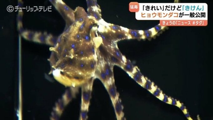 海の”最凶”生物が一般公開 猛毒のヒョウモンダコに子供たちは釘付け 富山県内で初確認 危険知らせる「ヒョウ柄」に注意 2026年4月3日(金) 19:42 国内 猛毒のテトロドトキシンを持つタコ「ヒョウモンダコ」がことし2月、富山県内で初めて確認され話題を呼んでいます。この”最凶”生物がなんと、水族館でお披露目です。3日から魚津水族館で一般公開されたのは、体長1…
