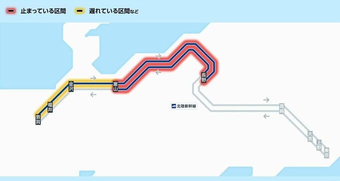 北陸新幹線は、強風のための長野―富山駅間で運転を見合わせています。