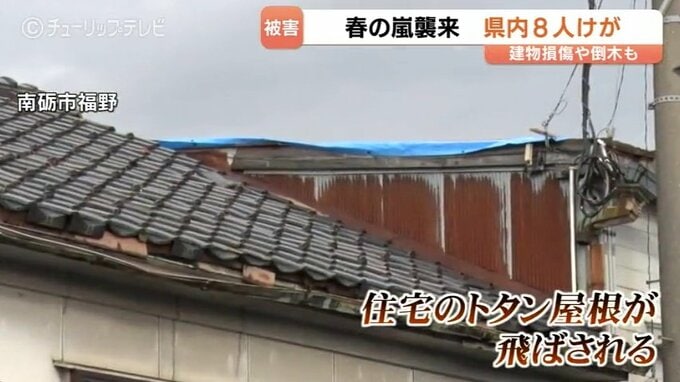 また南砺市福野では住宅のトタン屋根が飛ばされる被害が出ました。