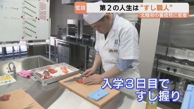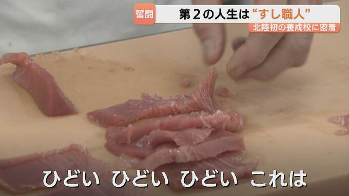 この日は、入学3日目にして早速、すしの握りに挑戦。ネタは日替わりで、岩瀬漁港でその日に水揚げされた新鮮な魚を使います。