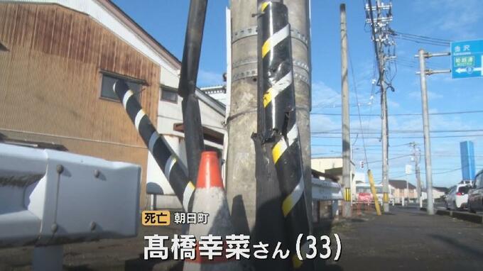 大破した軽乗用車の近くで朝日町の高橋幸菜さん(33)が倒れているのが見つかり、搬送先の病院で死亡が確認されました。