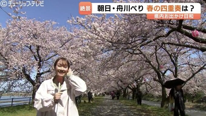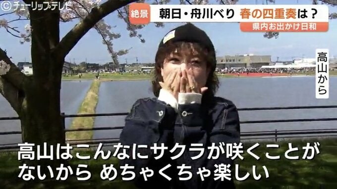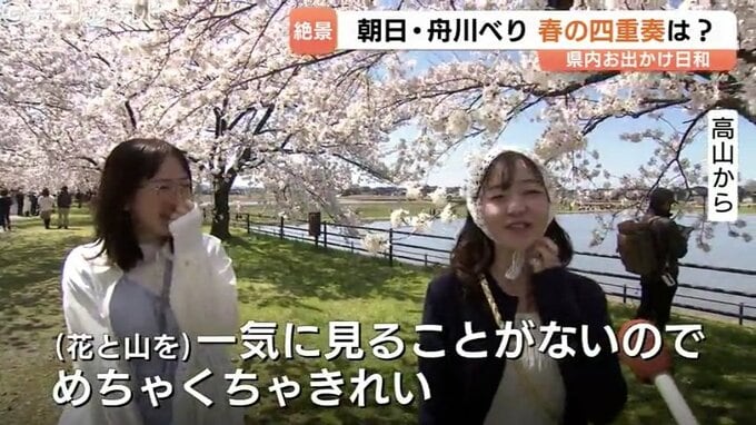 「(桜と雪山を)一気に見ることがないのでめちゃくちゃきれいです」「ベストタイミング」