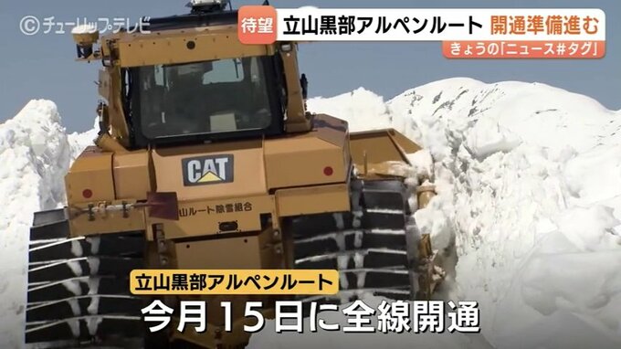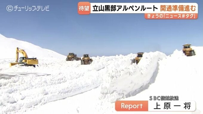 「間もなく全線開通する立山黒部アルペンルート。標高2450メートル地点では、ブルドーザー8台がフル稼働です」