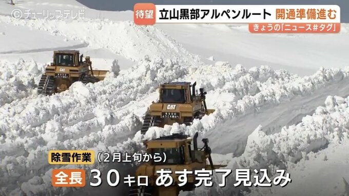 巨大な雪の壁『雪の大谷』で知られる立山黒部アルペンルートで、全線開通に向けた準備が進んでいます。
