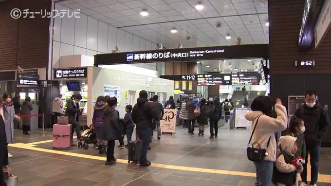 年末年始をふるさと富山で過ごした人たちのUターンラッシュがピークを迎え、北陸新幹線の富山駅では、大きな荷物を抱えた人や見送りにきた家族連れなどの姿が多く見られました。
