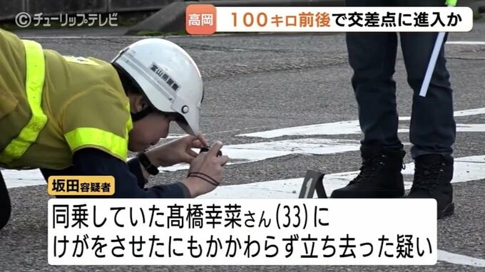 富山県高岡市羽広2丁目の交差点で信号機の柱に衝突し、同乗していた髙橋幸菜さん(33)にけがをさせたにもかかわらず、立ち去った疑いが持たれています。