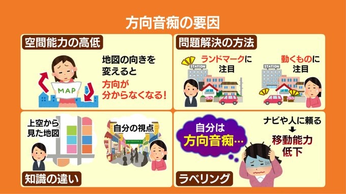 「自分は方向音痴だ」と決めつけ、周囲やスマホに頼りすぎてしまうことで、結果的に移動能力が低下。