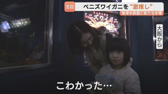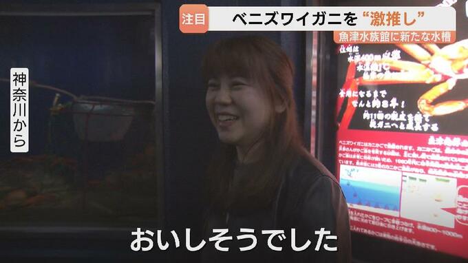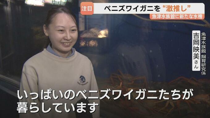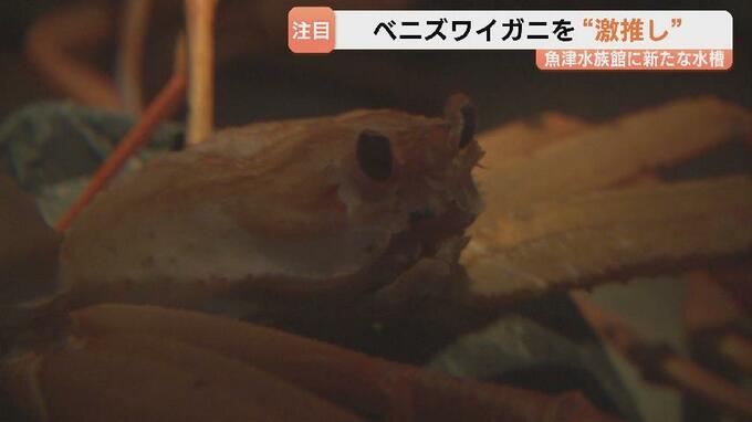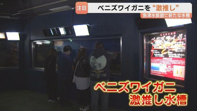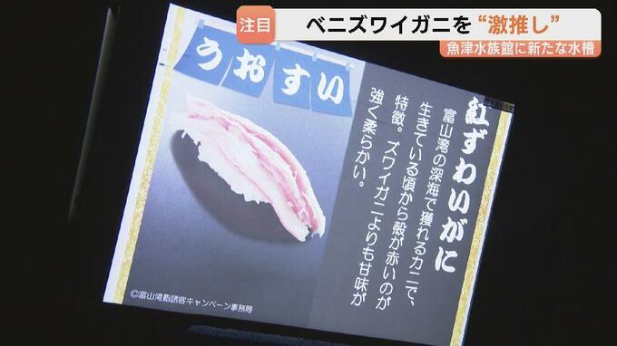 「魚津水族館、平日にもかかわらず多くの人でにぎわっています。きょうから新しく展示が始まったのが『ベニズワイガニ激推し水槽』です」