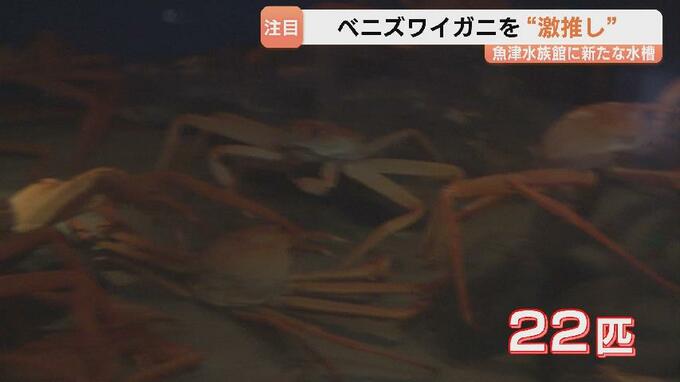 富山湾を代表する味覚、ベニズワイガニ。その魅力を間近で感じてもらおうと、富山県魚津市の魚津水族館に、22匹ものカニがひしめき合う「ベニズワイガニ激推し水槽」が新たに誕生しました。