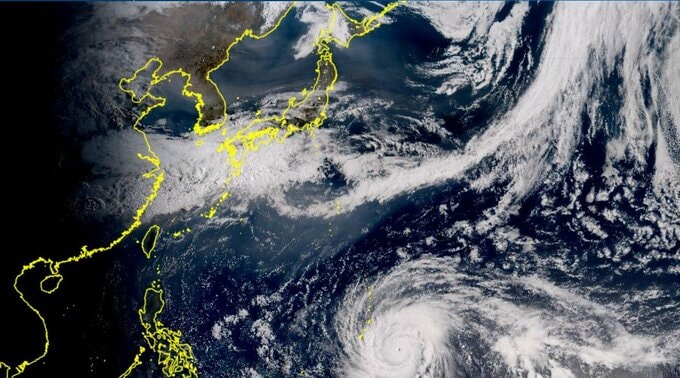 風速25m/s以上の暴風域は中心から全域165km、風速15m/s以上の強風域は北東側600km、南西側500kmに及んでいます。