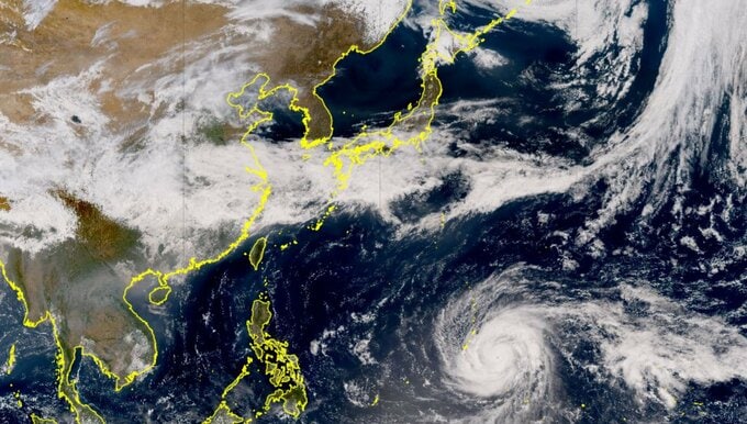 風速25m/s以上の暴風域は中心から全域165km、風速15m/s以上の強風域は北東側600km、南西側500kmに及んでいます。
