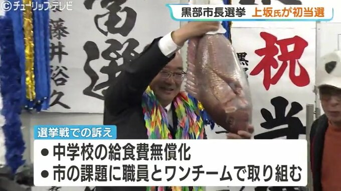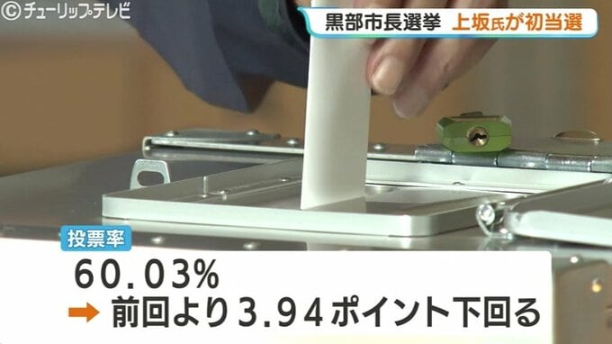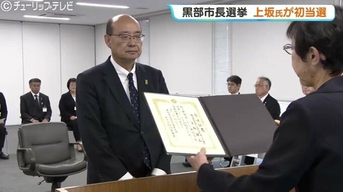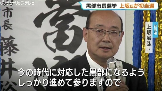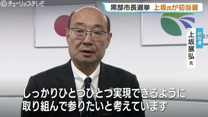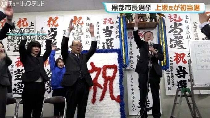 12日投開票が行われた富山県黒部市の市長選挙で、前の副市長の上坂展弘氏が、現職との一騎打ちを制して初当選を果たしました。