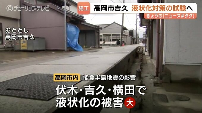 能登半島地震によって液状化の被害を受けた富山県高岡市の吉久地区で「地下水位低下工法」の実証実験に向けた工事が13日始まりました。