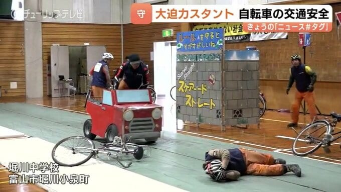 中学生に自転車事故の怖さを知ってもらおうと13日、富山市の堀川中学校で安全教室が開かれました。