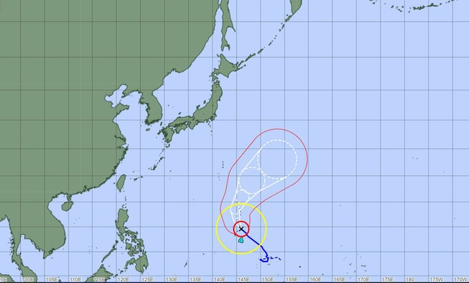 17日(金)午後3時には勢力が「強い」に変わり、小笠原近海へ達する見込みです。進む方向がこれまでの北寄りから北に北東へと変わり、中心気圧は960hPa、最大風速は40m/sと予報されています。