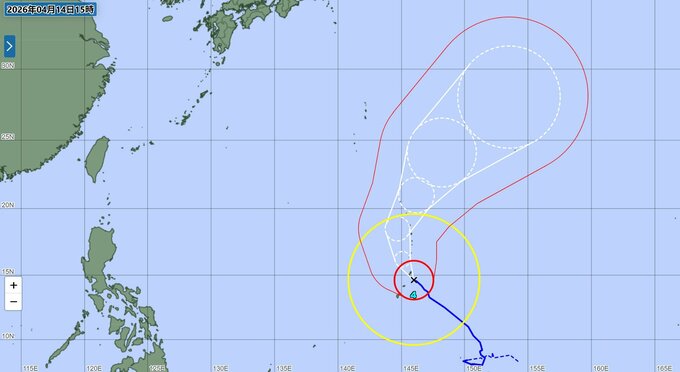19日(日)午後3時には進路がさらに北東へ転じ、速度も時速30kmに加速する予報です。南鳥島近海を北東に進み、中心気圧970hPa、最大風速35m/sの「強い」勢力を維持する見込みです。予報円の半径は400kmまで広がっており、今後の進路には大きな幅があります。
