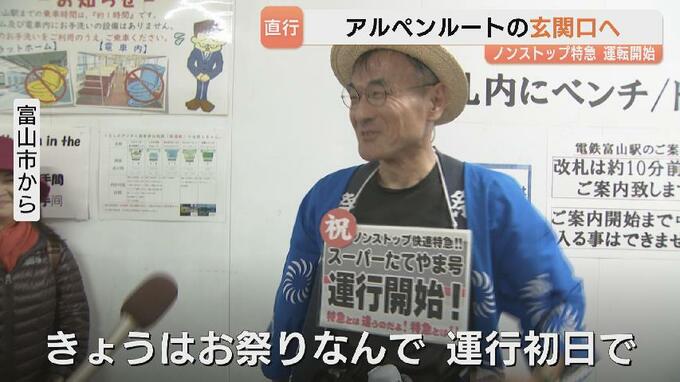 富山地鉄によりますと、スーパーたてやまの座席数は133席ですが、初日の1番列車は、立ち乗りを含め、およそ150人が乗車したということです。