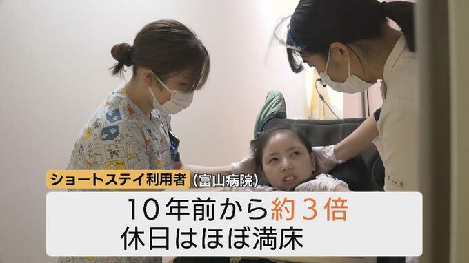県内では医療的ケア児を受け入れられる施設は限られており、利用者は増加。友花さんが利用している国立病院機構 富山病院では10年前の約3倍となり、休日はほぼ満床です。