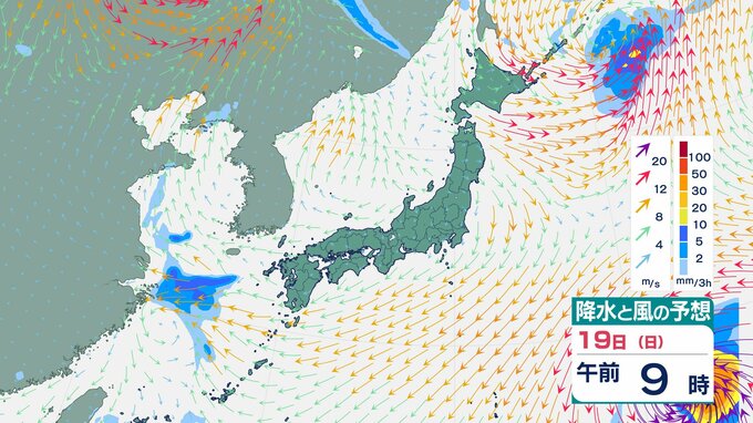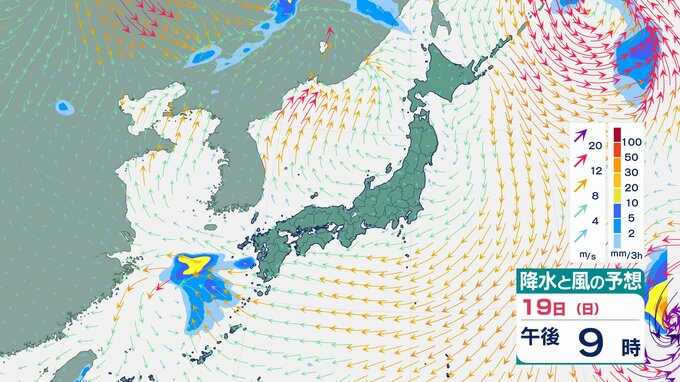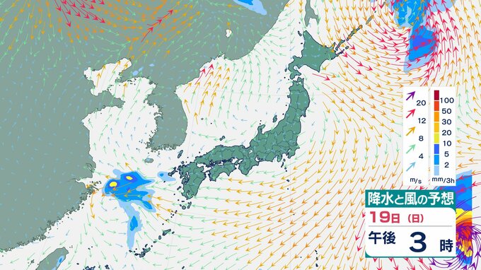ニュースクリップ 【台風情報】台風4号、中心気圧935hPaの非常に強い勢力…17日に小笠原諸島へ接近、週末は東へ大きく進路変更【雨と風のシミュレーション】 2026年4月15日(水) 21:15 国内 天気 19日(日)の雨と風のシミュレーション