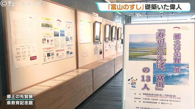 富山の農林水産業の礎を築いた偉人を、「寿司」を切り口に紹介する企画展が、16日から始まりました。